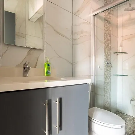 Enjoy the comfort of a bathroom in Casa Korima Cancun - Luxurious - Budget Friendly apartment, which is equipped with hair dryers and bath sheets. You'll also come across a separate toilet and a shower.
